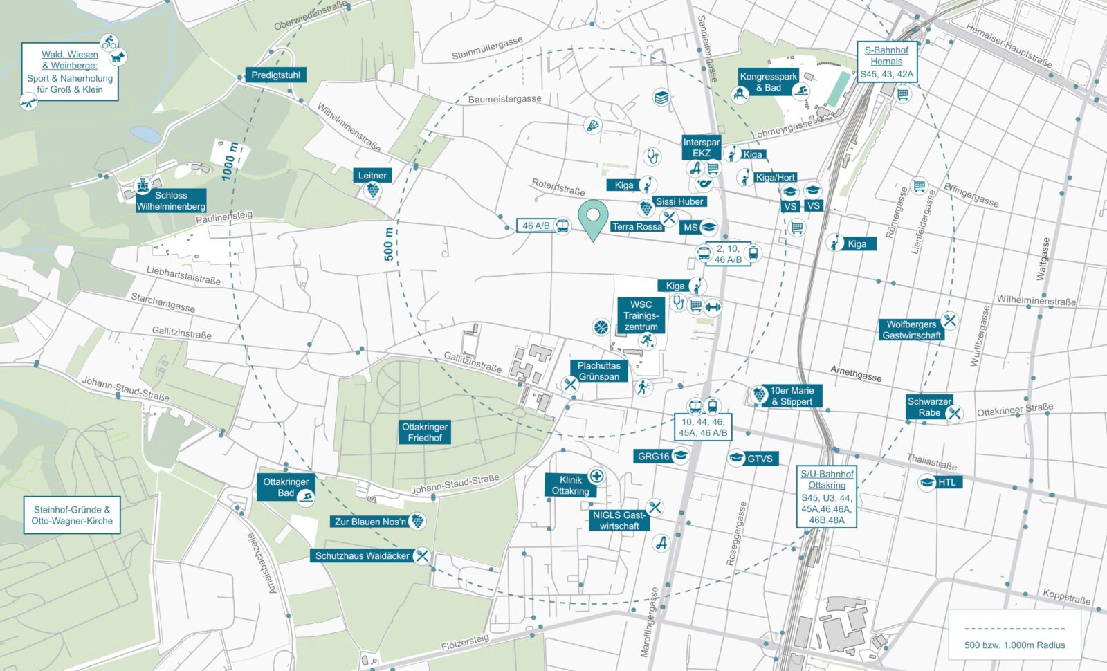 127 Heaven liegt dort, wo Wien spürbar ruhiger wird: am Übergang von urbanem Leben zu weitläufigen Grünräumen. Gleichzeitig sind Nahversorgung sowie schulische und medizinische Infrastruktur bequem erreichbar.