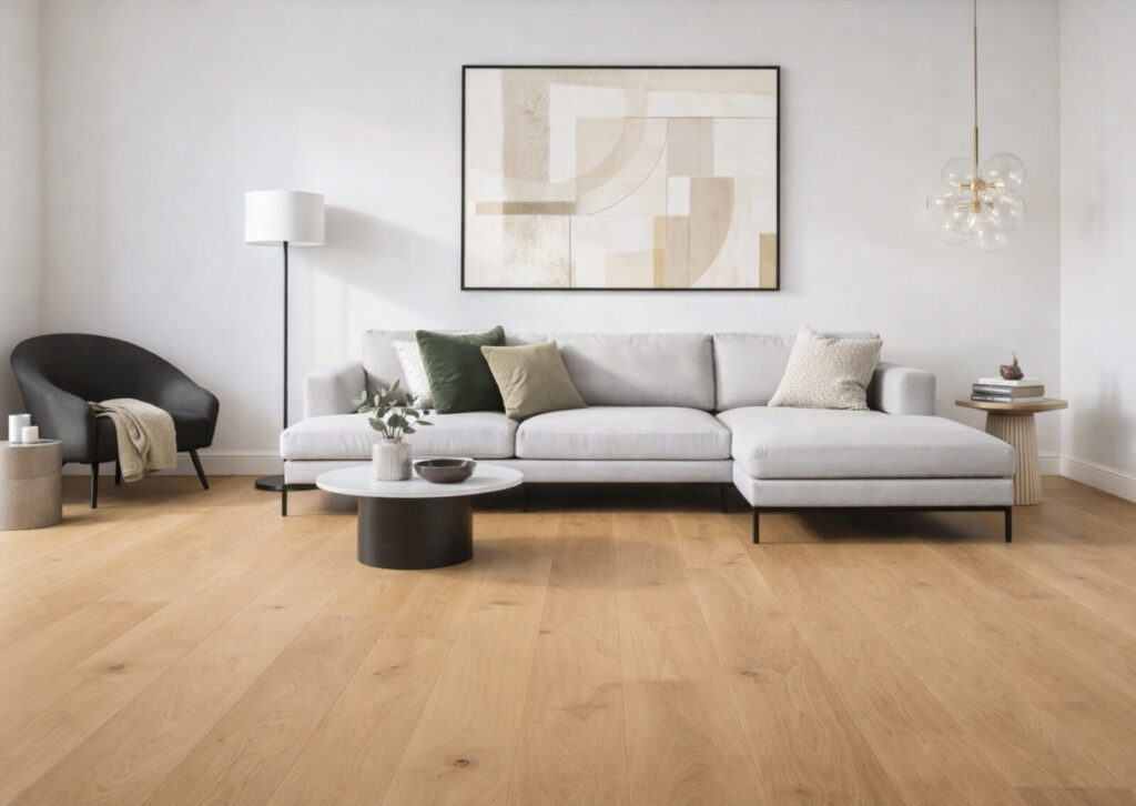 Ansprechende Materialien prägen das Ambiente: Eichenparkett als Landhausdiele, hochwertiges Feinsteinzeug in Bädern und Freibereichen sowie sorgfältig ausgewählte Marken-Sanitärprodukte. Bodenebene Duschen und weitere fein abgestimmte Details unterstreichen den Anspruch an Komfort und Langlebigkeit.